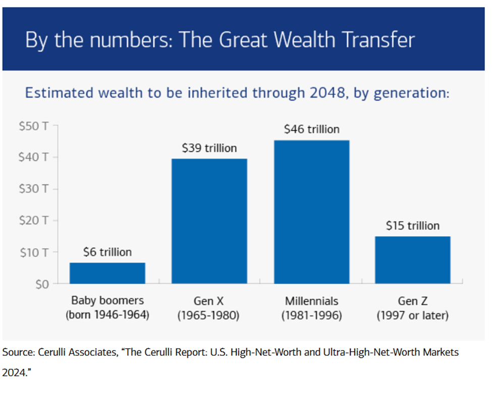 It’s important to note, this Morningstar data excludes private placements such as BREIT and BCRED, which would alone double the AUM tally in this space. However, even at a couple of multiples of $100B, it remains a tiny fraction of the $100T+ in motion under the aforementioned wealth transfer tsunami.