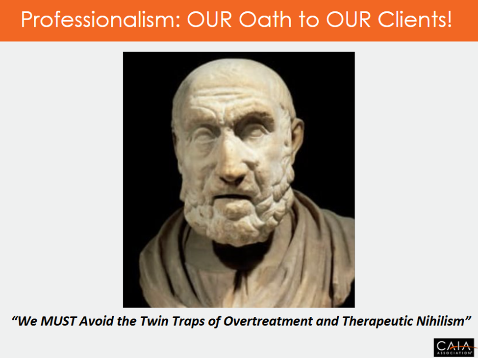 I will finish this essay with one last medical treatment (or maybe lack thereof!) that dates back to my time as an incessant road warrior. My very best ports-of-call were the many universities around the world where my student deck always ended with what has become my favorite page, featuring Hippocrates, the Father of Medicine, and the important lessons of therapeutic nihilism.