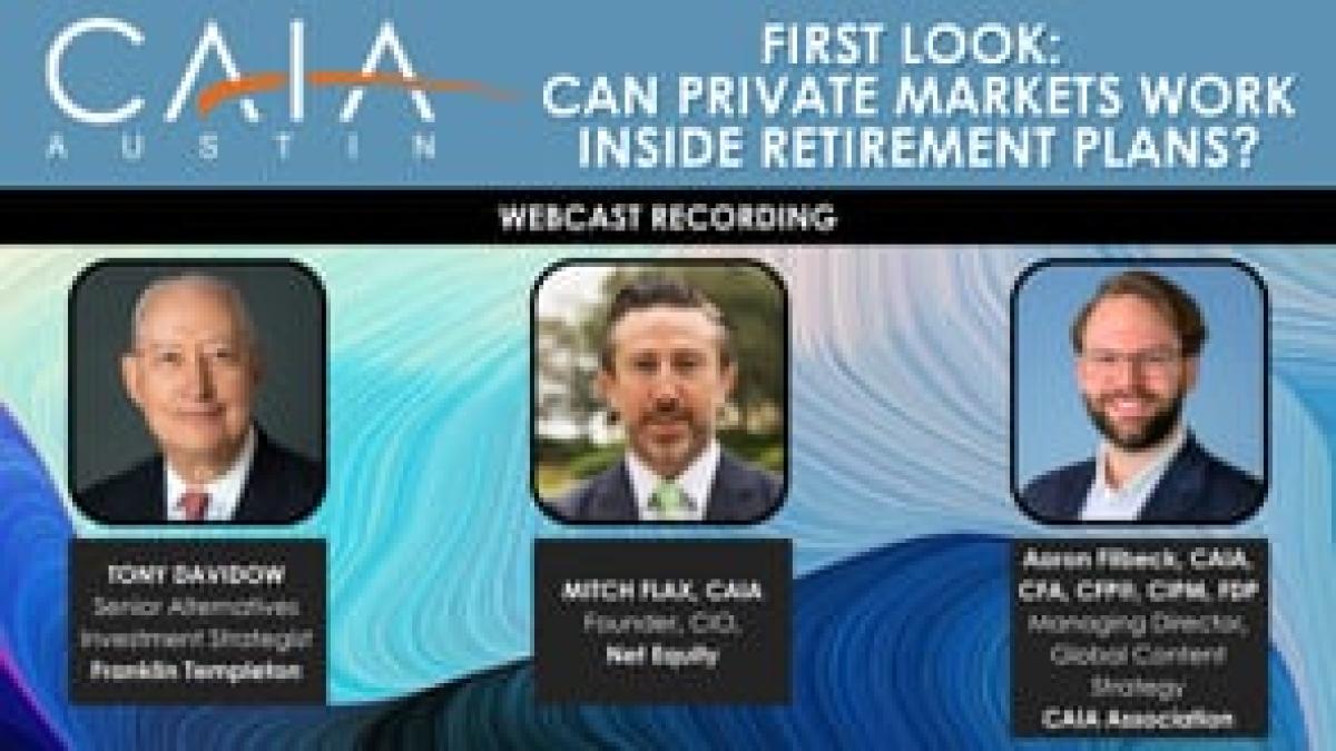 The landscape of retirement investing is rapidly evolving, and the inclusion of private market assets in defined contribution plans is emerging as a key topic of debate. Join us for a forward-looking panel discussion that explored the practical, regulatory, and investment implications of incorporating private markets into retirement plans.